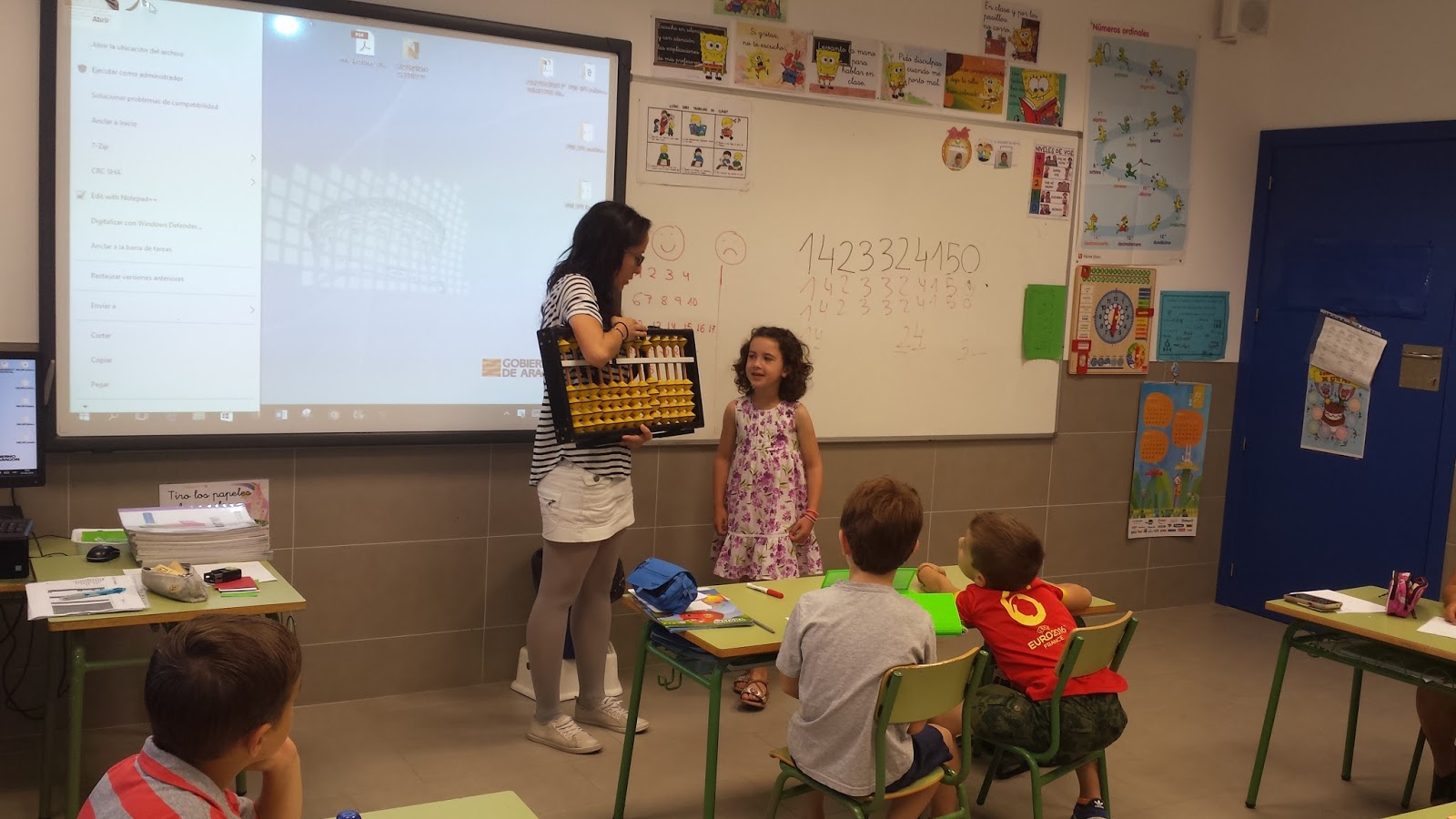 La semana pasada tuvimos la suerte de tener en clase a Ana, profesora de la actividad extraescolar aloha. Se trajo su ábaco y nos mostró como funciona ( unidades , decenas...). Al cabo de unos minutos estábamos realizando sumas y restas inmersos en juegos que no dejaron indiferente a ninguno de los alumnos sino que potenciaron su interés y concentración.